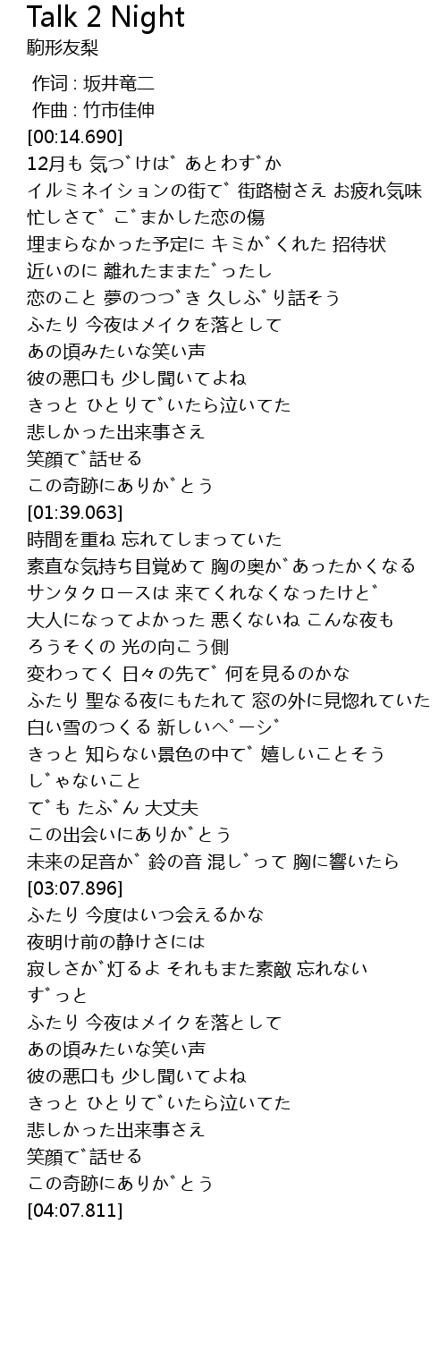 | [03:40.294] | ふたり 今夜はメイクを落として あの頃みたいな笑い声 |