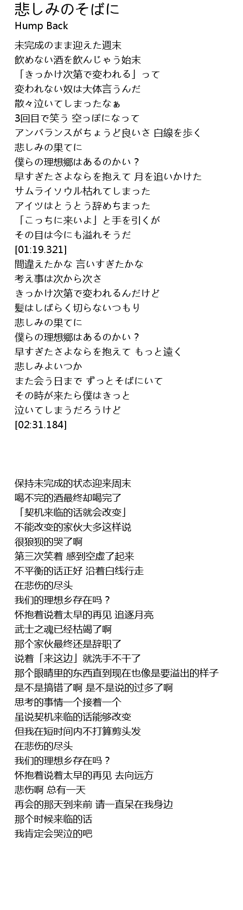 | [02:02.031] | 早すぎたさよならを抱えて もっと遠く |