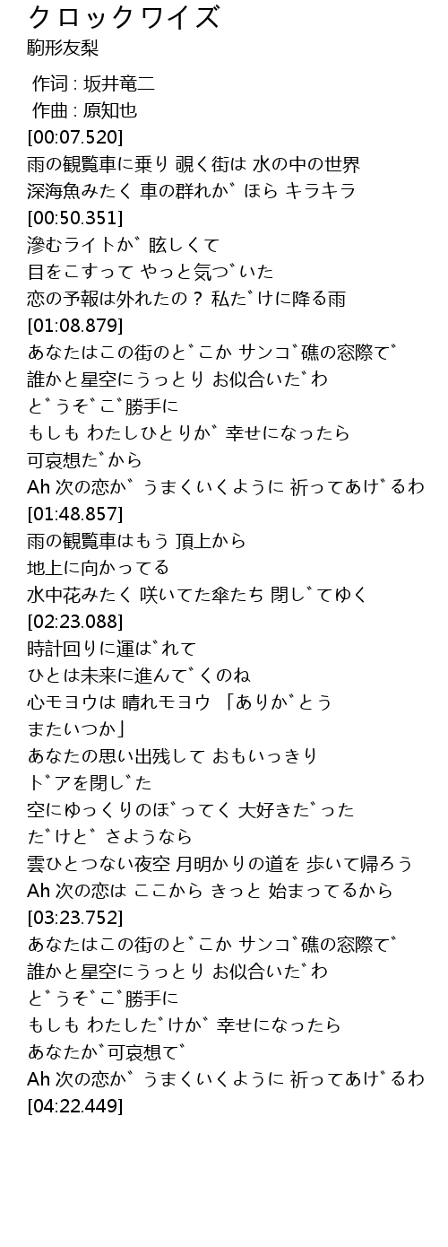 | [02:23.769] | 時計回りに運ばれて |