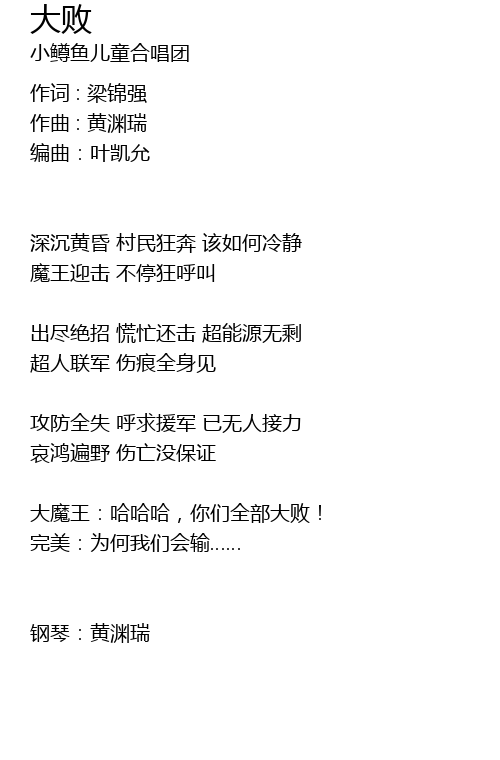 | 歌曲 | 大败 |