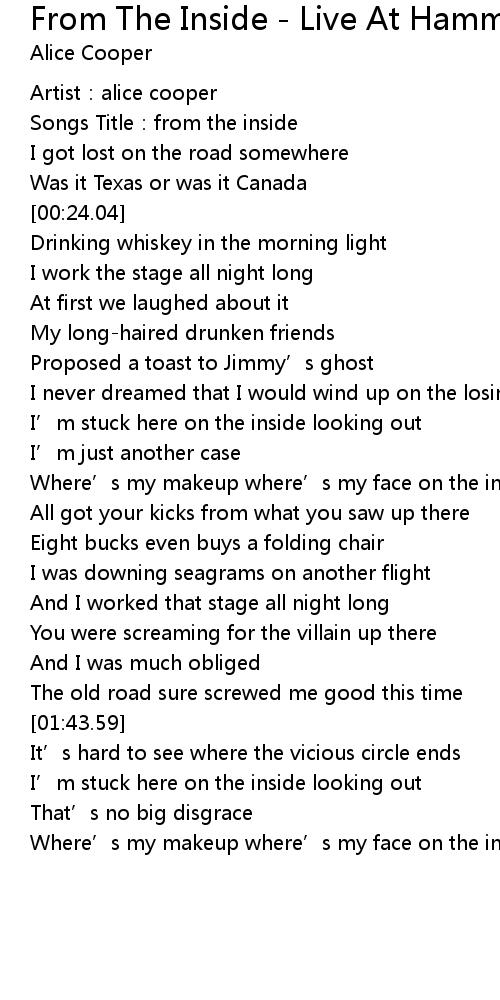 | [00:58.85] | Where' s my makeup where' s my face on the inside |