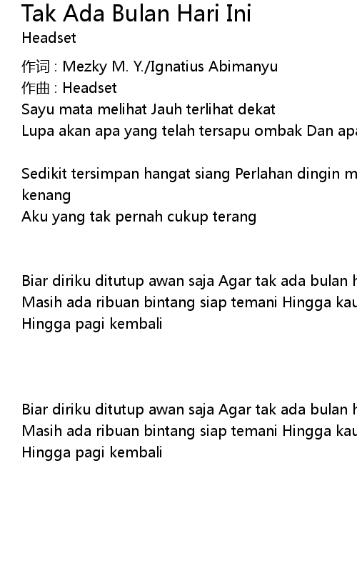 | 作词 : Mezky M. Y./Ignatius Abimanyu | |