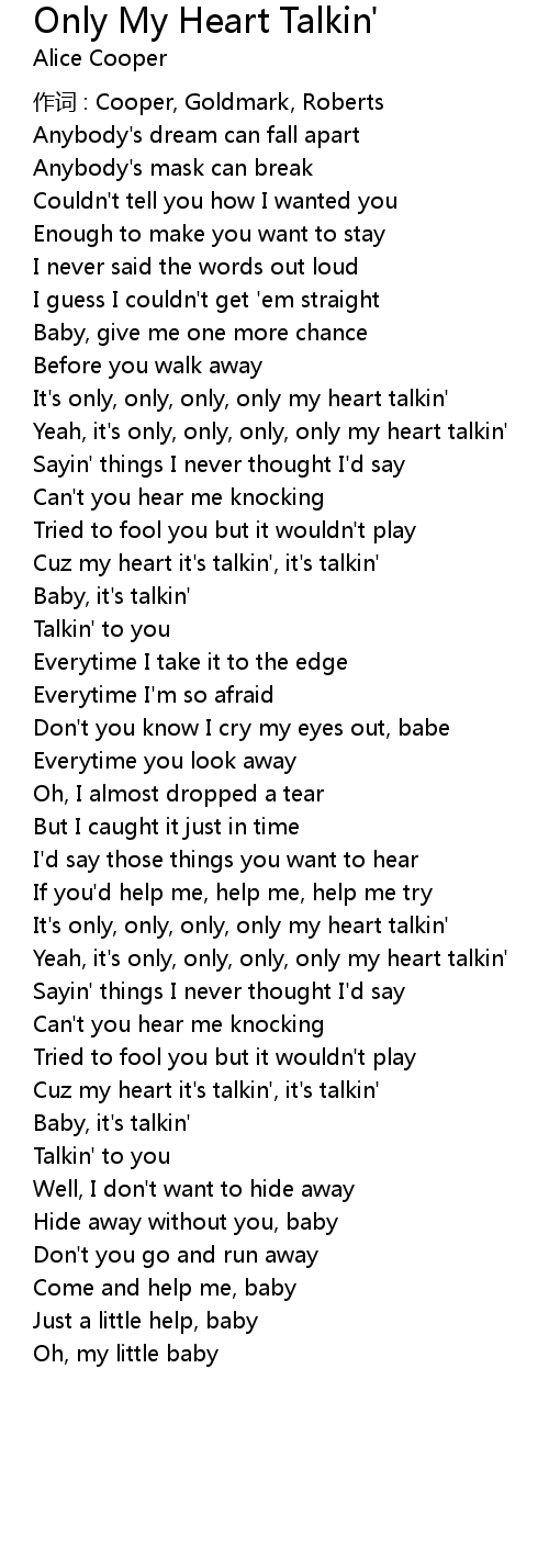 | It' s only, only, only, only my heart talkin' | |