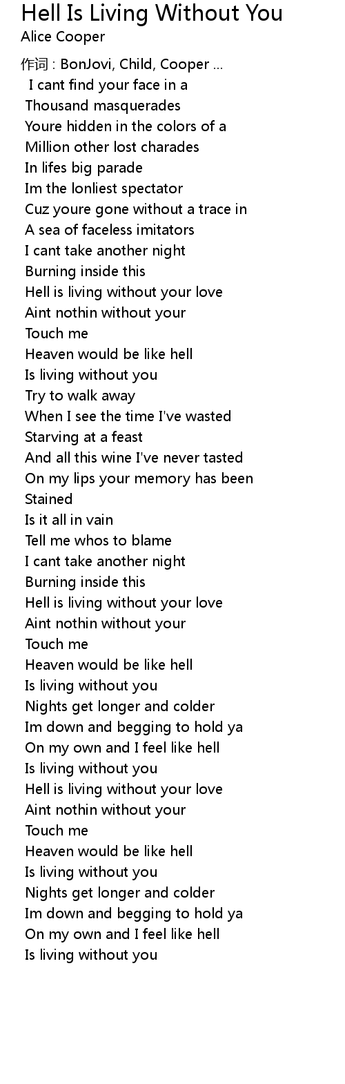 | 歌曲 | Hell Is Living Without You |