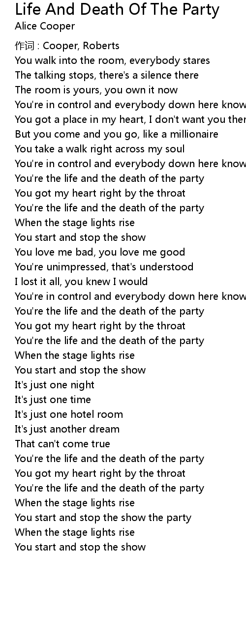 | 歌曲 | Life And Death Of The Party |