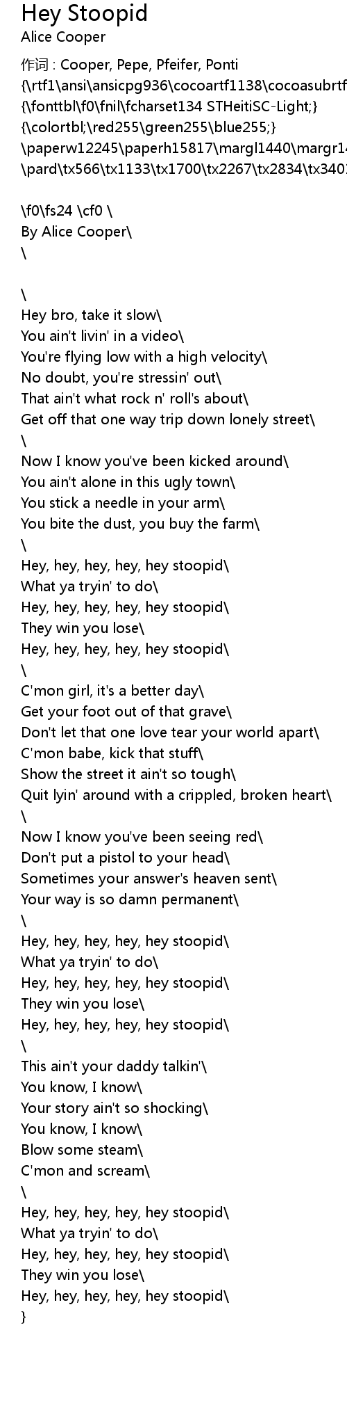 | 歌曲 | Hey Stoopid |