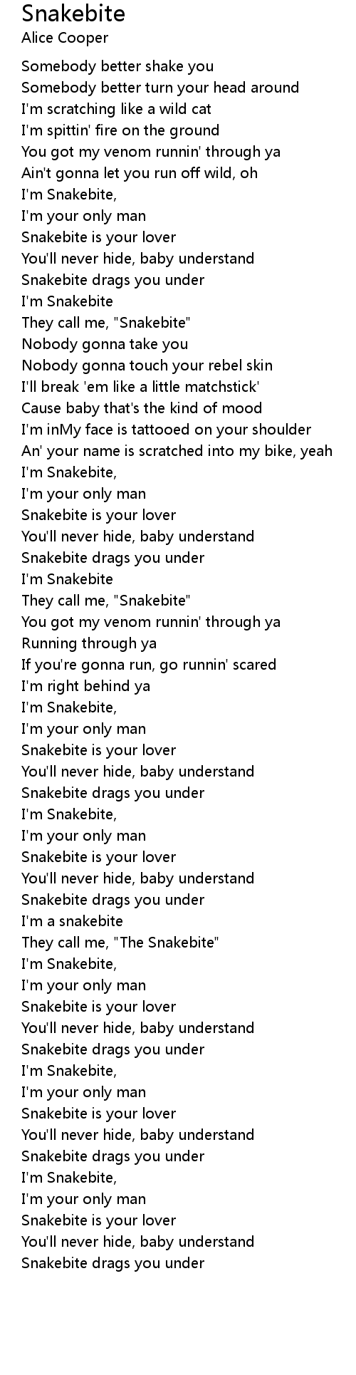 Snakebite is your lover |