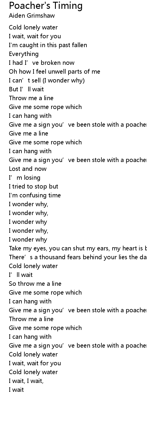 | Give me a sign you' ve been stole with a poacher' s time | |
