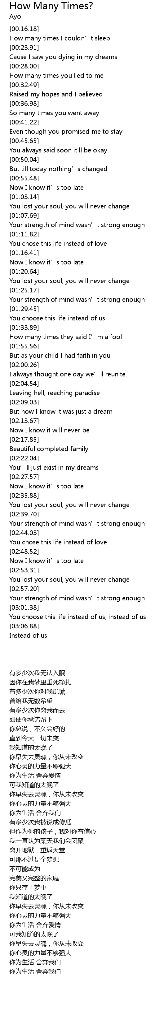 | [00:29.12] | How many times you lied to me |