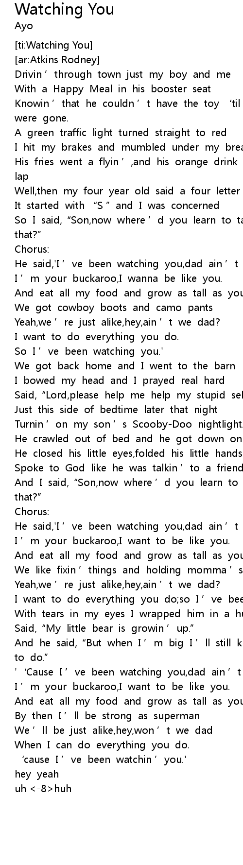 | [00:57.91] | He said,' I ' ve been watching you, dad ain ' t that cool? |