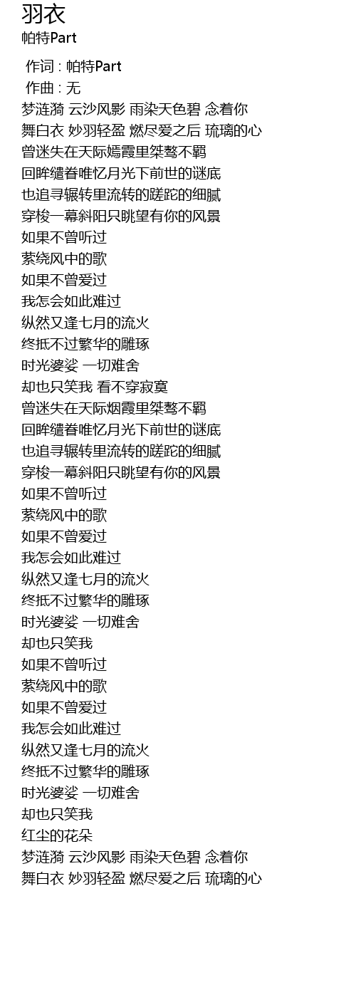 | [05:04.757] | 舞白衣 妙羽轻盈 燃尽爱之后 琉璃的心 |