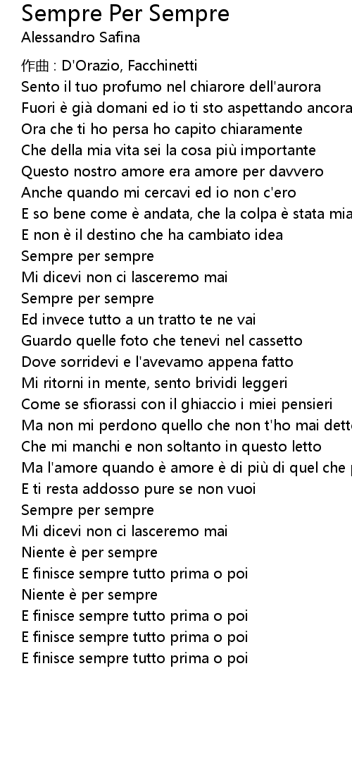 | 歌曲 | Sempre Per Sempre |