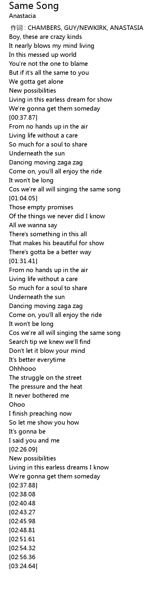 | [00:00.00] | 作词 : CHAMBERS, GUY/NEWKIRK, ANASTASIA |