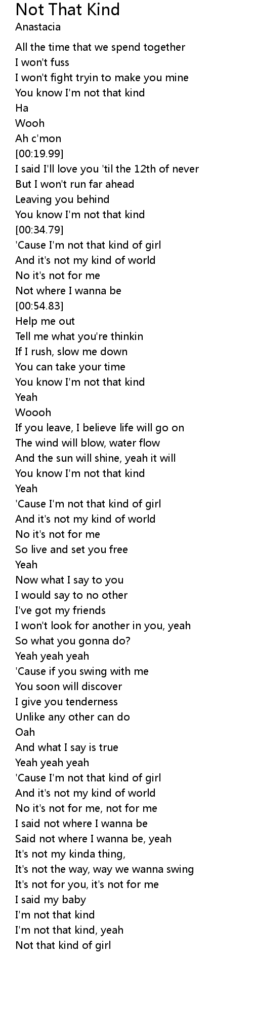 'Cause I'm not that kind of girl |