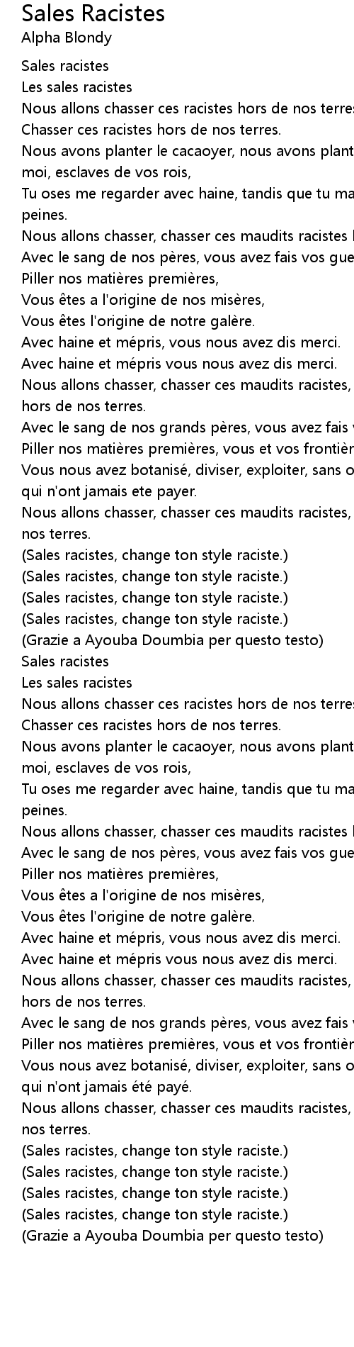 | 歌曲 | Sales Racistes |