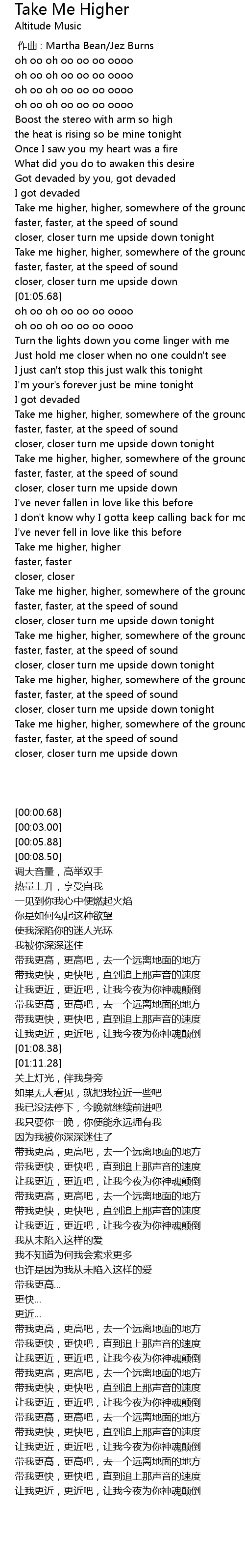 | [00:56.00] | Take me higher, higher, somewhere of the ground |
