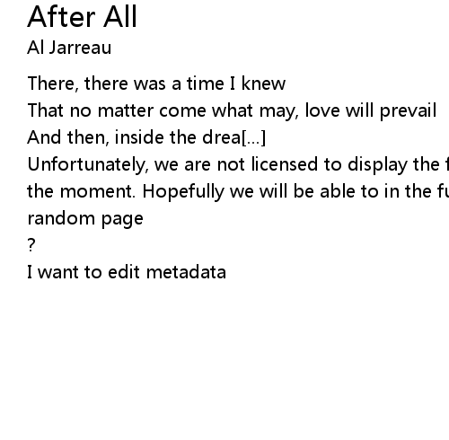 | Unfortunately, we are not licensed to display the full lyrics for this song at the moment. Hopefully we will be able to in the future. Until then, how about a | |