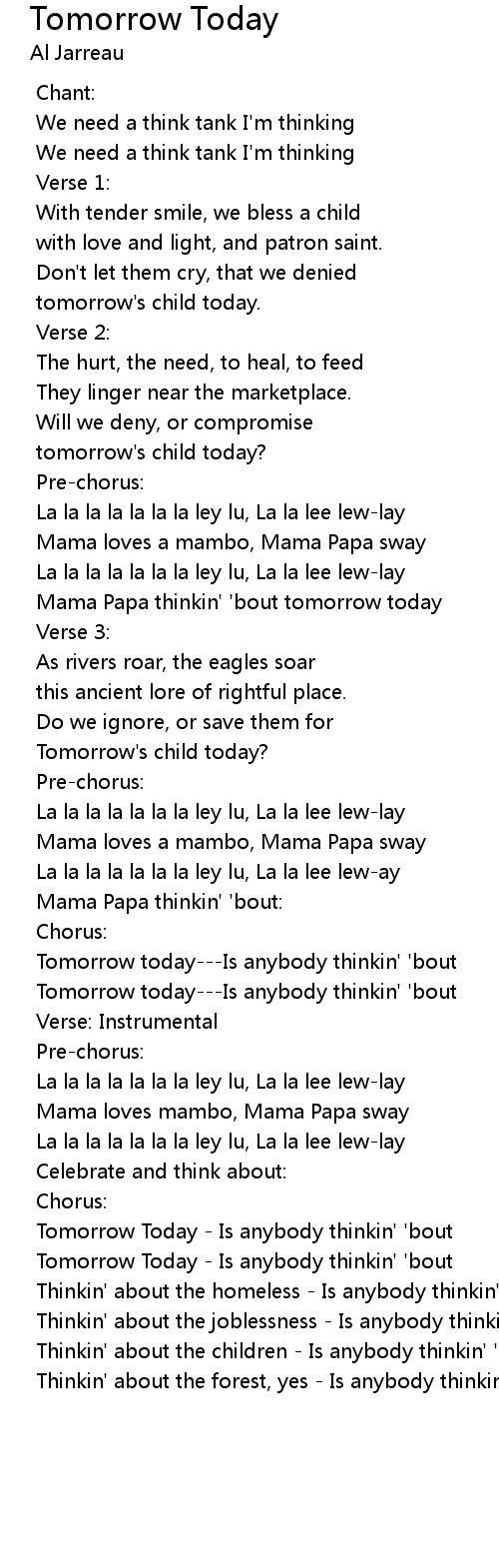 Tomorrow Today 歌词