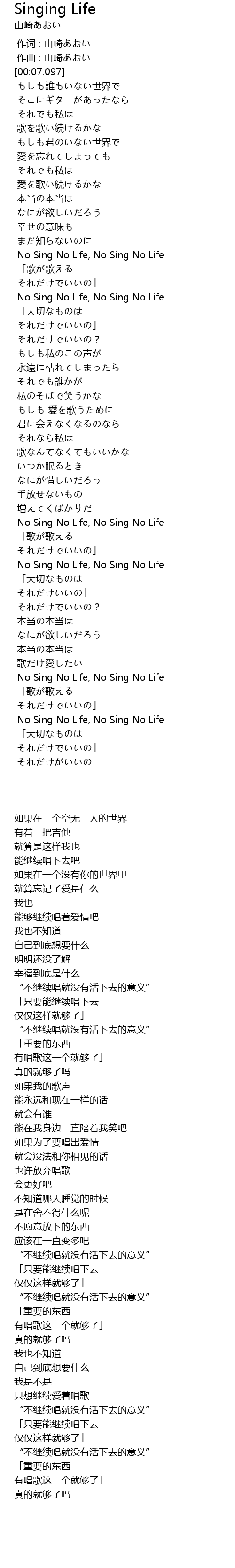 | [02:57.075] | No Sing No Life, No Sing No Life |