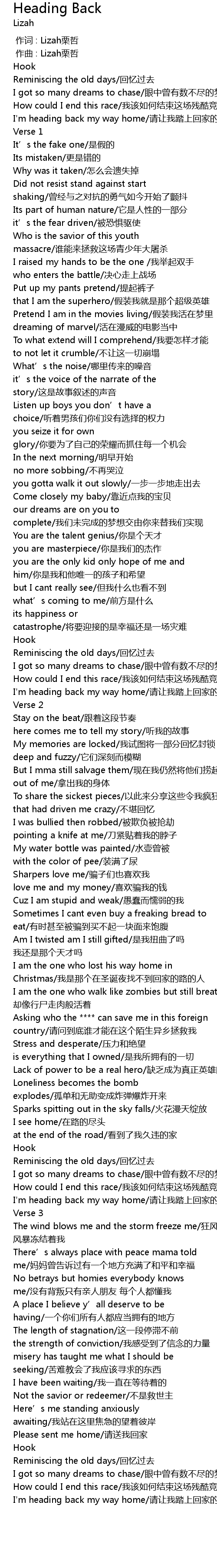 | 歌曲 | Heading Back |
