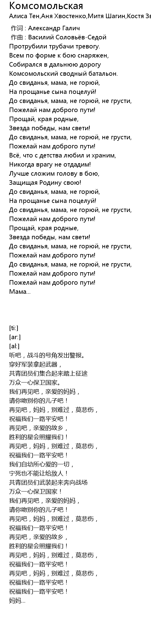 | [00:00.000] | 作词 : Александр Галич |