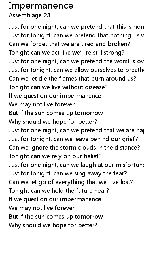| Just for tonight, can we pretend that nothing’s wrong? | |
