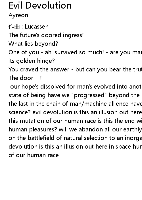 | 歌曲 | Evil Devolution |