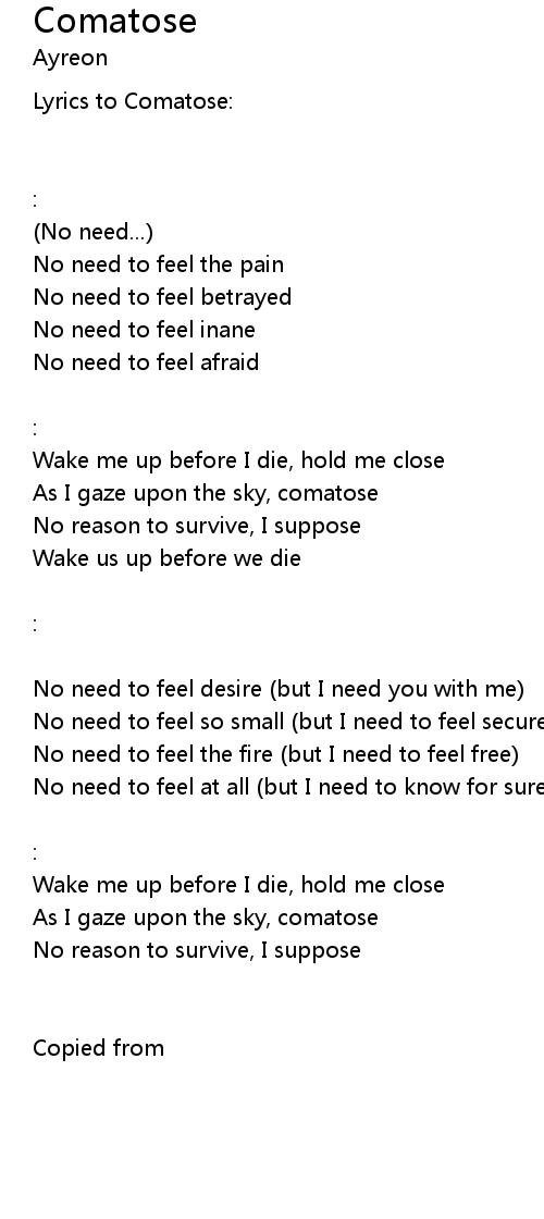 | Lyrics to Comatose: | |