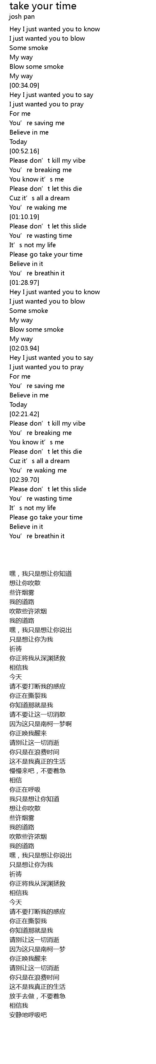 | [02:23.17] | Please don' t kill my vibe |