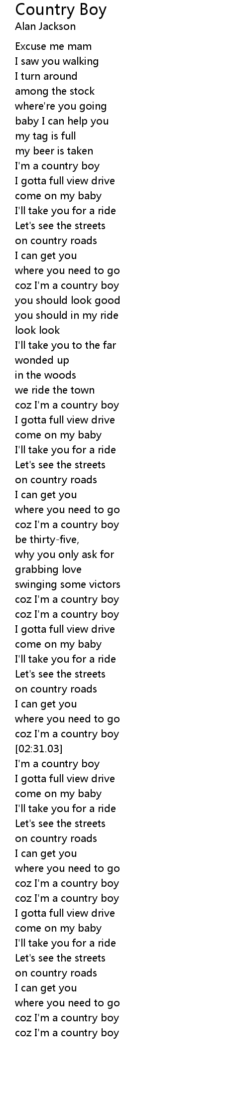 coz I'm a country boy |