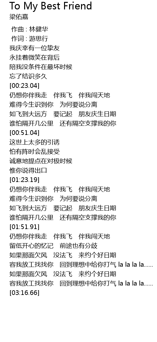 | 歌曲 | To My Best Friend |