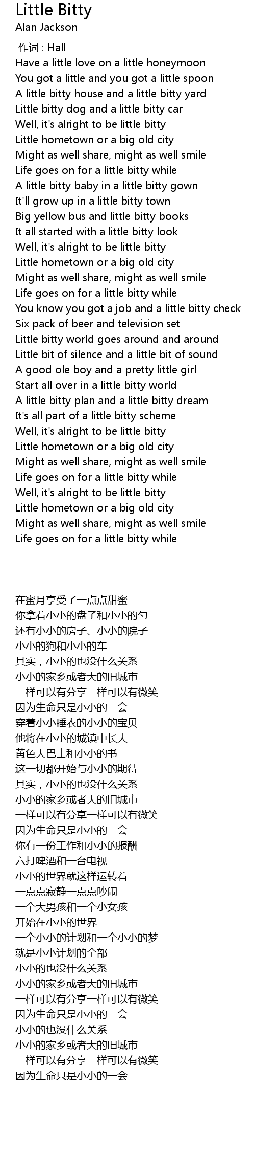 | [00:25.32] | Well, it' s alright to be little bitty |
