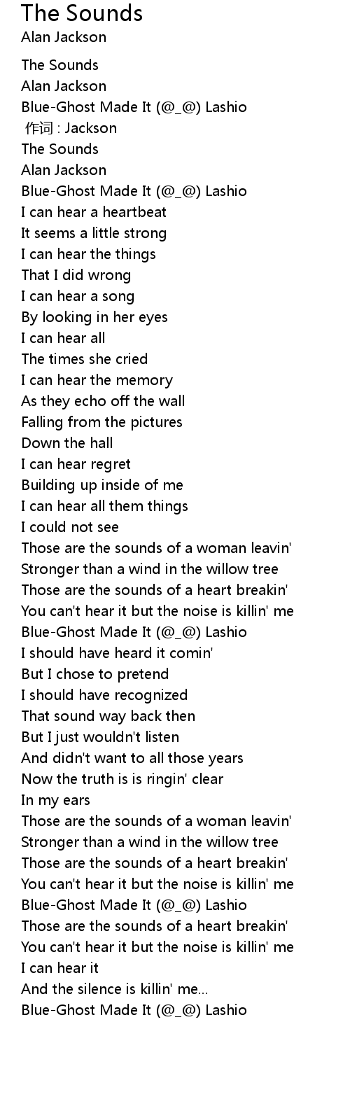 | [02:20.80] | Those are the sounds of a heart breakin' |
