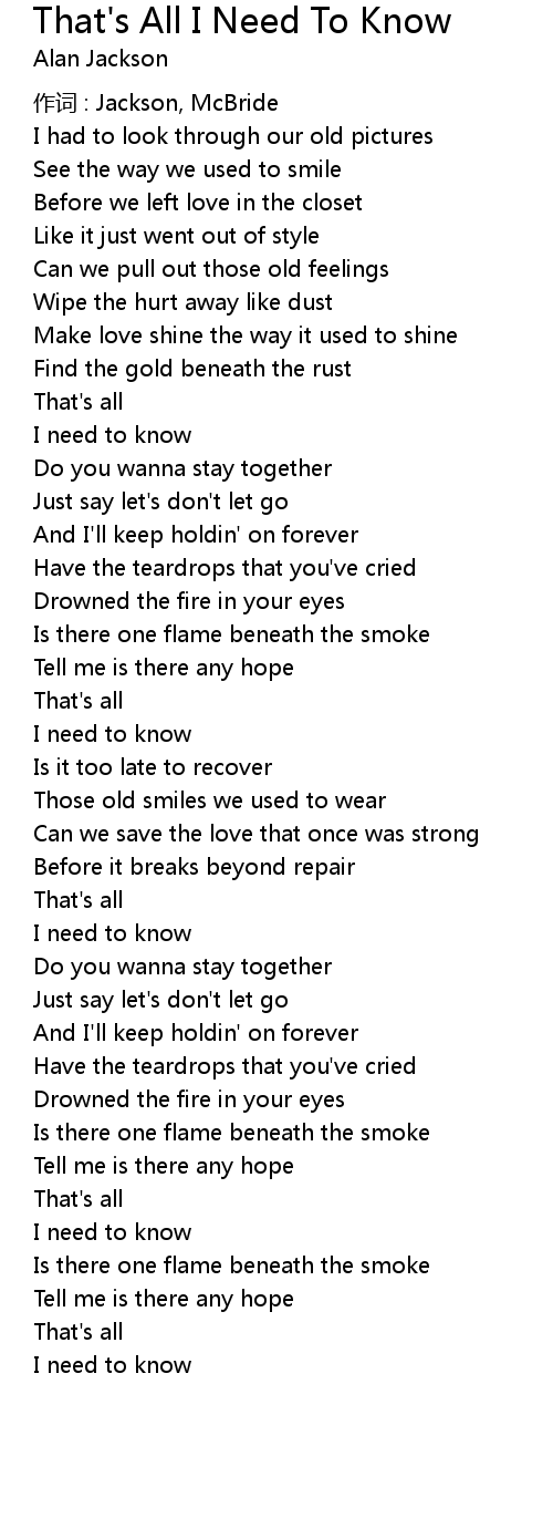 | 歌曲 | That's All I Need To Know |