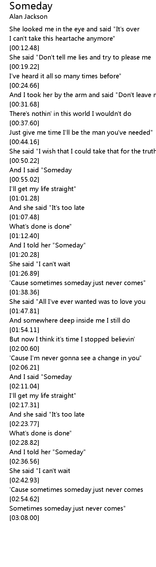 And I told her "Someday" |