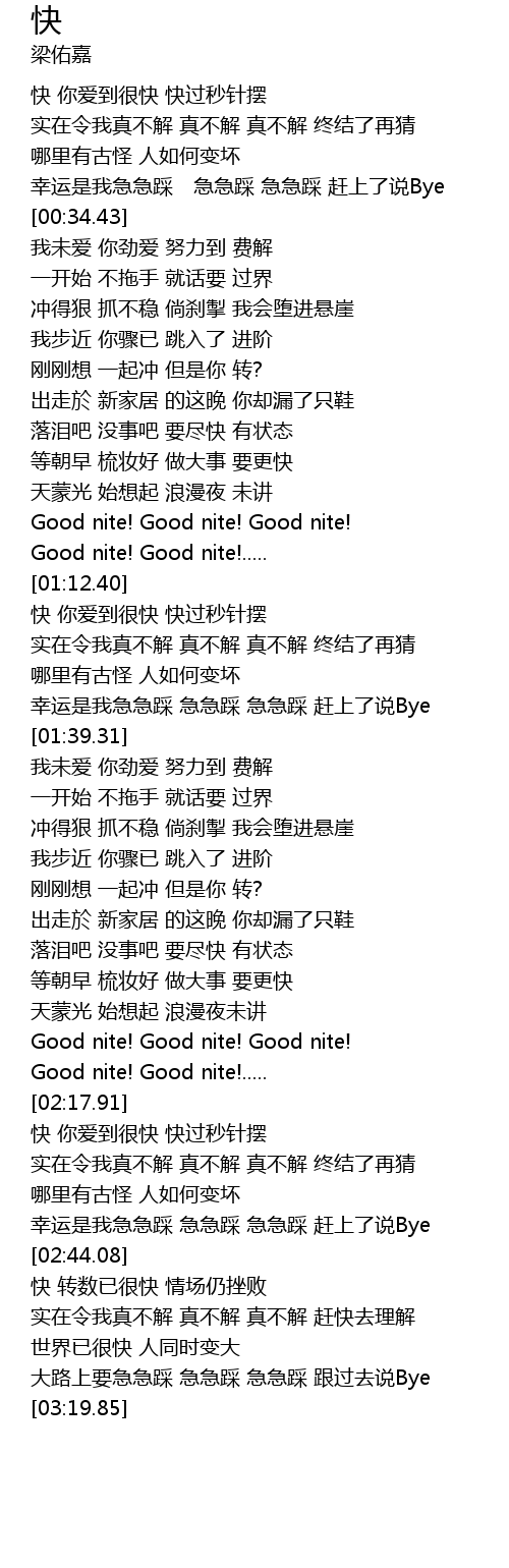 | [02:18.45] | 快 你爱到很快 快过秒针摆 |