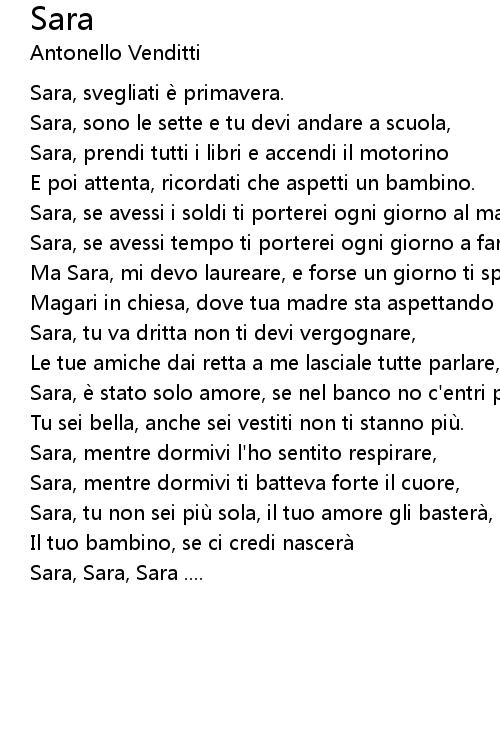 | Sara, se avessi tempo ti porterei ogni giorno a far l' amore, | |