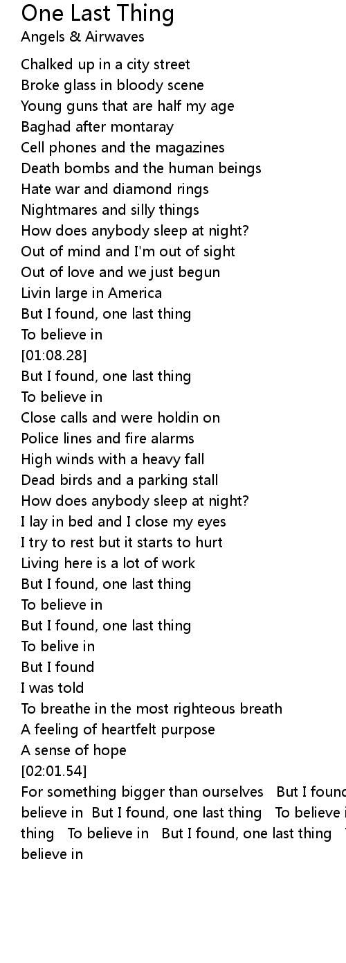 [02:03.32] For something bigger than ourselves But I found, one last thing To believe in But I found, one last thing To believe in But I found, one last thing To believe in But I found, one last thing To believe in To believe in