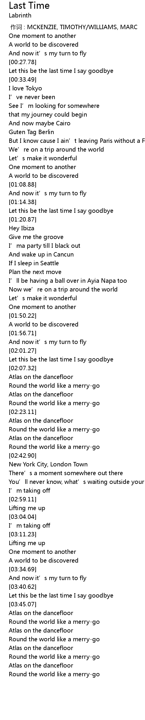 Last Time 歌词