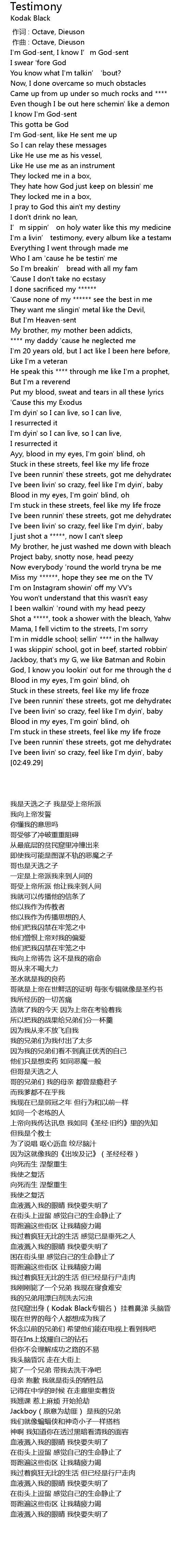 | [00:38.67] | I' m a livin' testimony, every album like a testament |