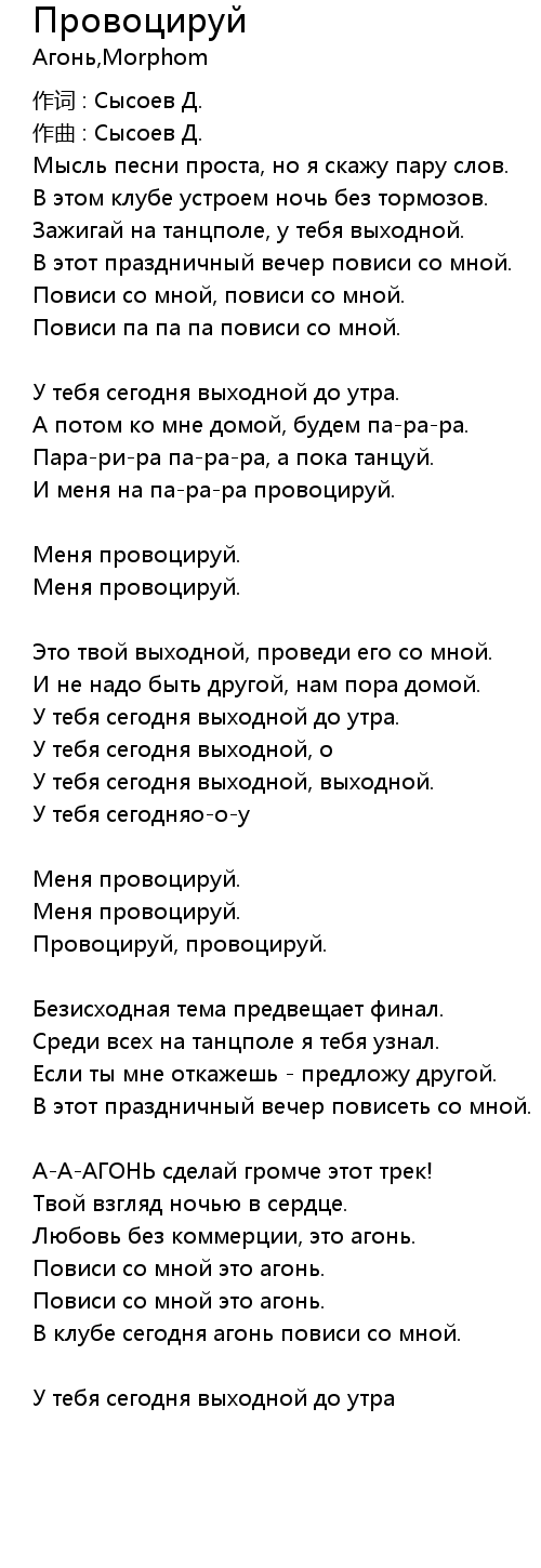 Провоцируй 歌词