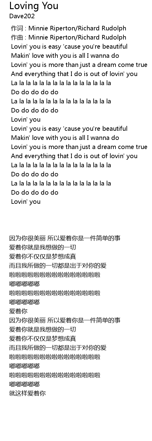 | [00:01.391] | Lovin' you is easy 'cause you're beautiful |