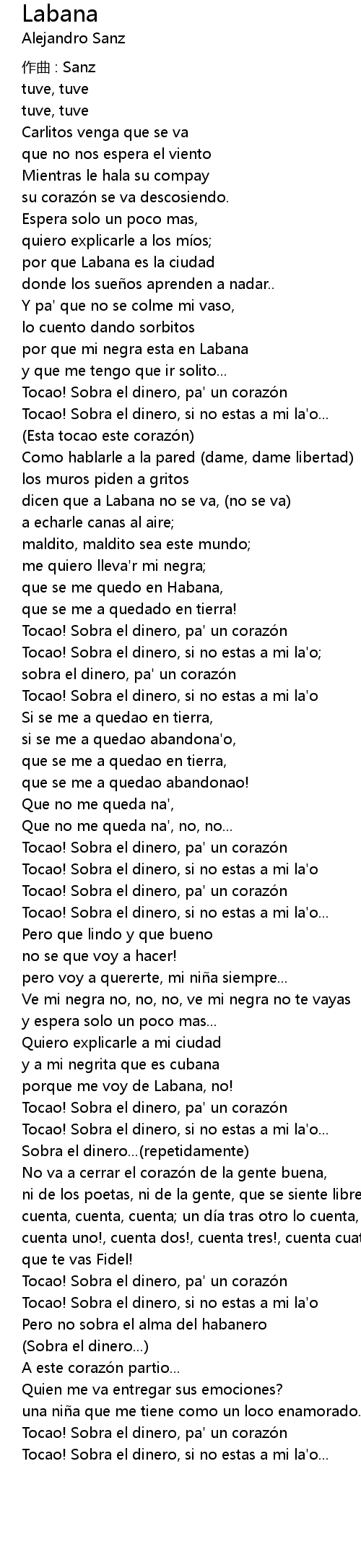 | Tocao! Sobra el dinero, pa' un corazón | |