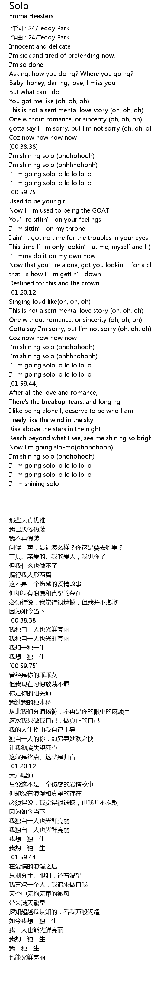 | [01:57.74] | I' m going solo lo lo lo lo lo |