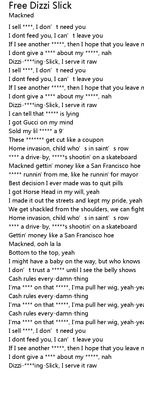 | [02:03.31] | Dizzi-****ing-Slick, I serve it raw |
