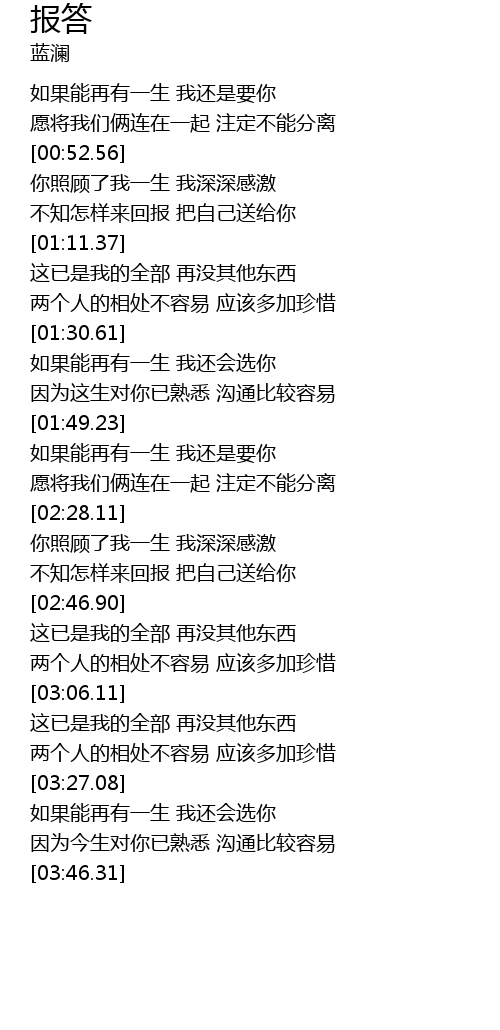 | [00:36.02] | 如果能再有一生 我还是要你 |
