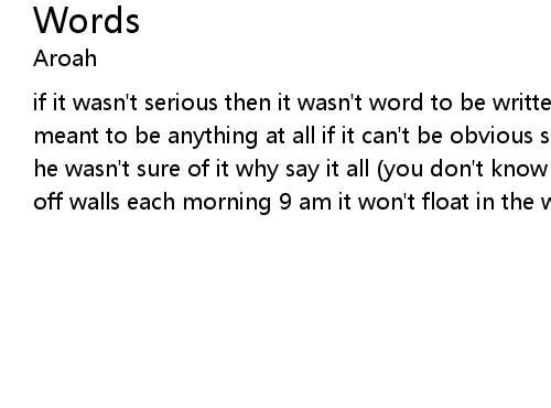 | if it wasn't serious then it wasn't word to be written if it wasn't serious meant to be anything at all if it can't be obvious somehow why bother say it if he wasn't sure of it why say it all (you don't know what you're saying) bouncing off walls each morning 9 am it won't float in the water |