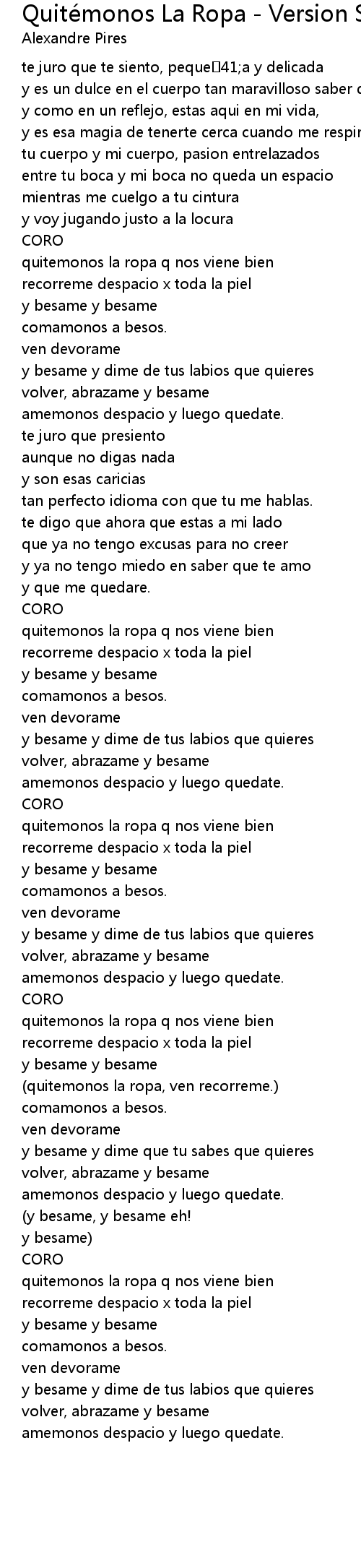 | 歌曲 | Quitémonos La Ropa - Version Salsa |