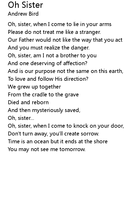 Oh, sister, when I come to lie in your arms |
