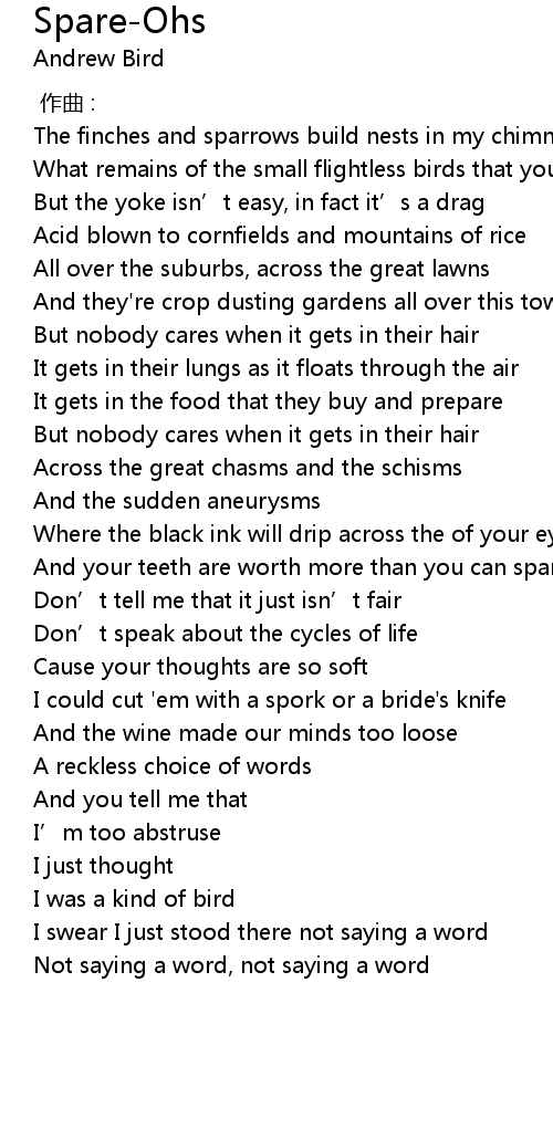 | [00:42.190] | The finches and sparrows build nests in my chimney |